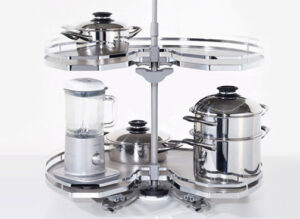 Szafka narożna kojarzy Ci się z poszukiwaniem naczyń w niedostępnym kącie ? Już nie ! polecamy Państwu wiele praktycznych rozwiązań dedykowanych do szafek narożnych. Akcesoria te sprawią iż zyskasz pełny dostęp do zawartości tej szafki i w pełni wykorzystasz miejsce w narożniku. Najbardziej popularne to kosze obrotowe, kosze Magic Corner czy kosze LeMans (popularnie zwane „nerką”).