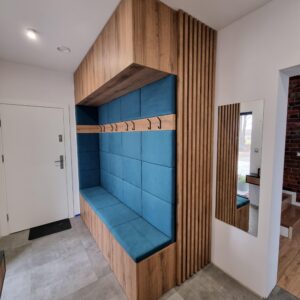 Dodatki tapicerowane to oryginalny pomysł na przytulną aranżację Twojego wnętrza. Tapicerowane siedziska i panele na ścianie zastosowane w aranżacji przedpokoju czy wezgłowia za łóżkiem zapewniają komfort i elegancję. Dzięki nim sprawisz, że Twoje domowe wnętrze będzie nie tylko wygodne, ale również wyjątkowo przytulne. Poduszki wyposażone są w zamek oraz rzepy samoprzylepne.
